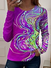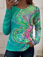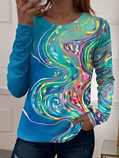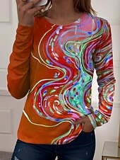 More information about Women's T Shirt Graphic Geometric Vintage Stylish Casual Long Sleeve Crew Neck Regular Tops Daily Print Red Blue Purple Green Summer Spring Fall