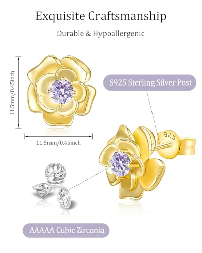HOT ! 14K Gold Plated Rose Stud Earrings, Hypoallergenic with 925 Sterling Silver Posts, Birthstone Jewelry for Women, Dainty Anniversary Birthday Gifts