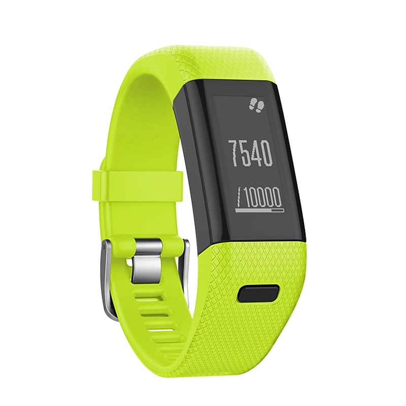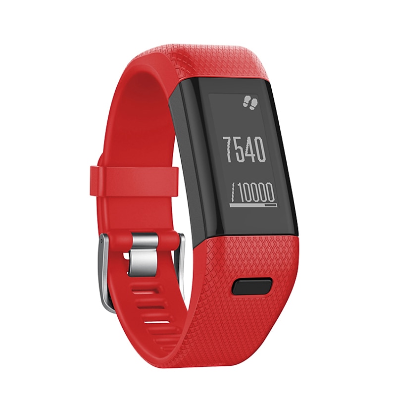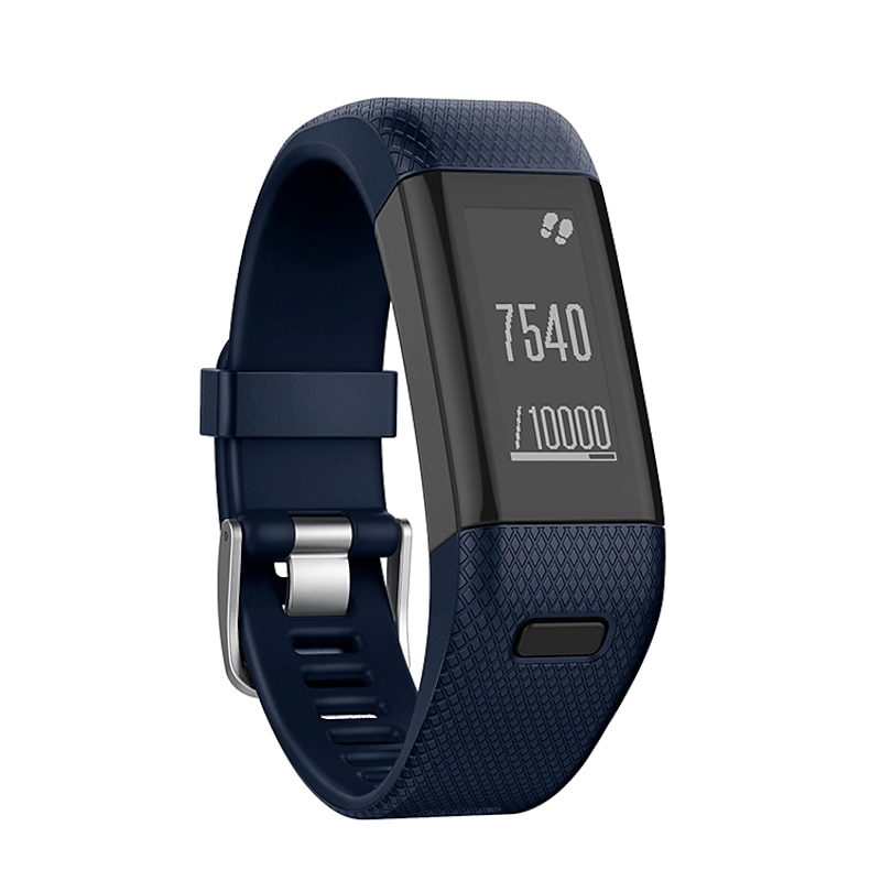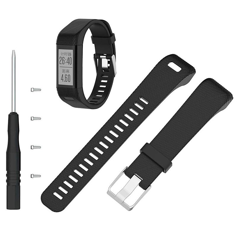 Highlights - Compatible with Garmin Vivosmart HR+ (HR plus), Approach X10, Approach X40 (NOT compatible for Garmin Vivosmart HR) - Made of high-quality genuine silicone with stainless steel buckle - Durable and waterproof; can be worn during exercise, sweat, sleep, and travel - Comfortable to wear for extended periods of time - Easy to assemble and remove using pins, screwdriver, and nuts - Adjustable size to fit wrist circumference ranging from 5.70" to 8.26" (145mm-210mm) - Includes 1 soft silicone band, 1 screwdriver, and 4 screw nuts (Tracker NOT included in packaging)