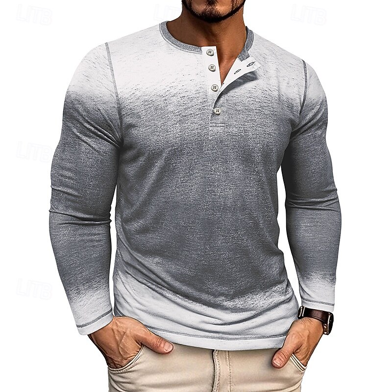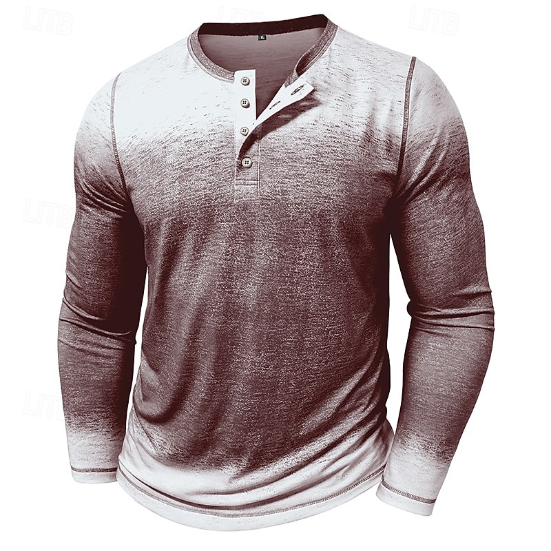 HOT ! Men's T Shirt Henley Shirt Tee Tee Top Long Sleeve Henley Spring Fall Gradual Fashion Designer Basic Buttons Vacation Street Going out Dark Red Blue Green Top Tee for Men