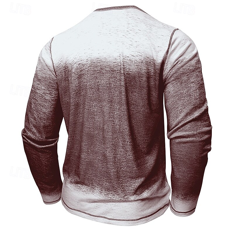 Men's T Shirt Henley Shirt Tee Tee Top Long Sleeve Henley Spring Fall Gradual Fashion Designer Basic Buttons Vacation Street Going out Dark Red Blue Green Top Tee for Men 18