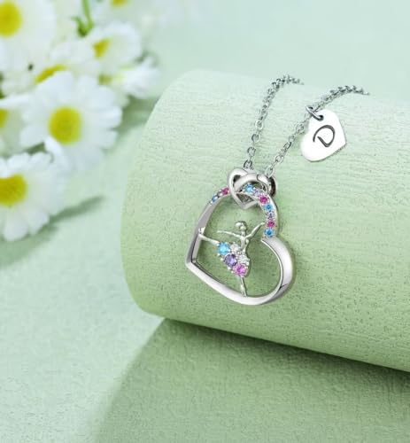 HOT ! Ballerina Necklaces Gifts for Girls Ballet Dancer Necklaces for Teens Little Girls Heart Initial Rainbow Dance Necklace Jewelry Gifts for Girls Women