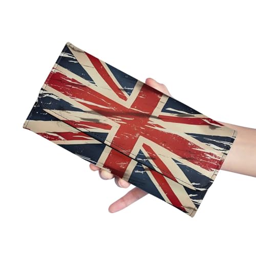 HOT ! Painting UK Flag Slim Card Wallets for Women Union Jack Flag Print Leather Long Wallet Trifold Zipper Pocket, Retro British Slim Leather Wallet with ID Window
