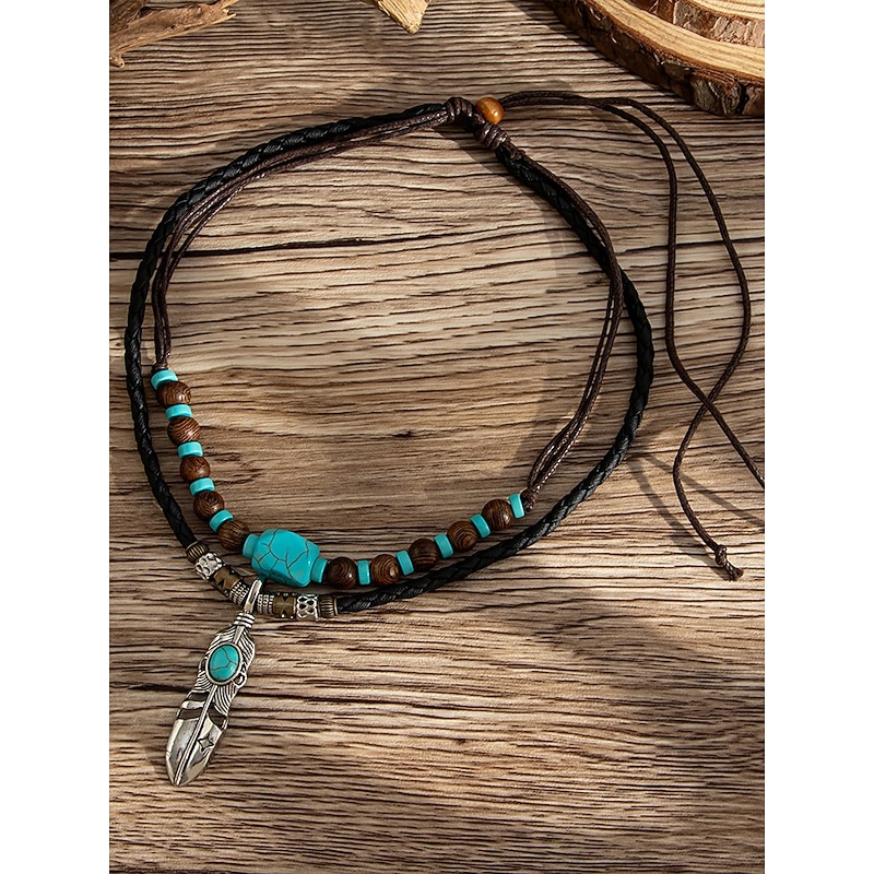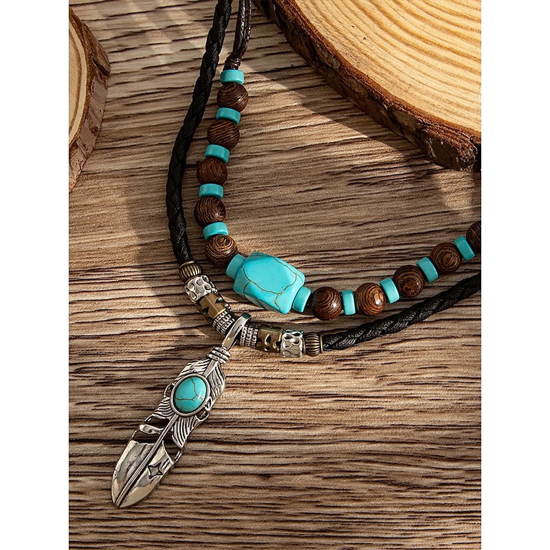 $11.99 - Men's Vintage Feather Pendant Necklace with Turquoise Beads – Tribal Style Leather Rope Jewelry for Festivals, Travel and Everyday Casual Wear 2025. Shop for cheap Men's Jewelry online? Buy at lightinthebox.com on sale today!