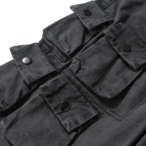 XYXIONGMAO Men's Black Functional Casual Trousers for Men Tactical Hip Hop Techwear High Street Flared Multi-Pocket Jeans 6