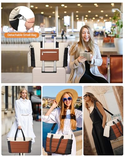 • Trendy Design & Lightweight: The puffer style and quilted pattern of this tote bag are very on-trend, looks chic while still being simple and versatile. Also it only weighs 1.1 lbs, making it comfortable to carry(Brown Black Beige)
