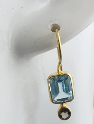 More information about Blue Topaz and Smoky Quartz Gold Plated Sterling Silver Drop Earrings - Handmade Mother's Day Jewelry Gift Ideas for Women - Natural Gem Gemstone - Birthstone Birthday Gift (Topaz and Smoky Quartz)