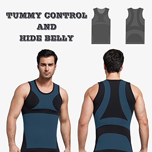 • HIGH QUALITY BINDING SPANDEX TO STAY SHAPER:The seam is sturdy and do not worry that the clothes might burst at the seams.It won't lose its elasticity even you use repeatedly.This slimming undershirts flatten the breast and stomach.Nylon and Spandex Mixed ,double compression for controlling tummy.If you want to look for fitting,this men body trimmer shirt is the perfect one for you.