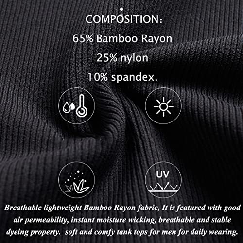 • COMPOSITION:65% Bamboo Rayon, 25% nylon, 10% spandex. Breathable lightweight Bamboo Rayon fabric, It is featured with good air permeability, instant moisture wicking, breathable and stable dyeing property. soft and comfy tank tops for men for daily wearing.