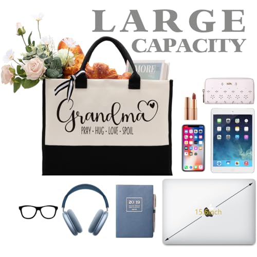 Grandma Canvas Tote Gift, Grandma Heart Gift: Pray - Hug - fancy - Spoil, Canvas Tote Bag for Gifting, Women Cotton Canvas Tote Bag for Mother's Day, Grandma Birthday Gift, Christian Gift for Nana