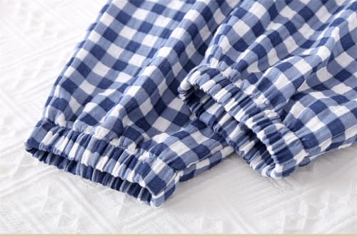 Rfmfkkg Men'S Color Contrast Japanese Plaid Home Suit Cotton Crepe Long Sleeve Pajamas Set