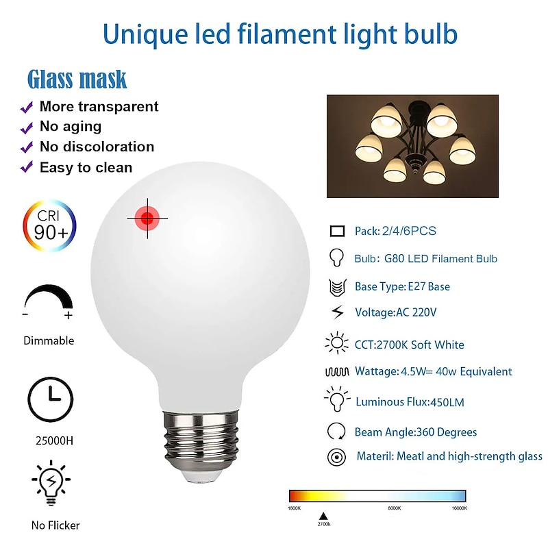 $38.55 - G80 5W LED Globe Lights Dimmable LED Edison Bulb 6000K- 2700K 450lm E27 Base Opalescent Glass Facing AC220V Very Suitable for Vanity Mirror Floor Lamp 2025. Shop for cheap LED Globe Bulbs online? Buy at lightinthebox.com on sale today!