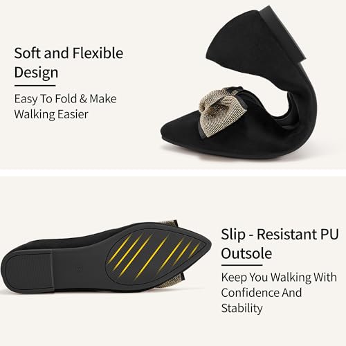 • Fashion Upper: The upper of the wedding flats is made of high quality suede fabric, which is soft and skin-friendly, providing you with a better wearing experience. Pointed toe and bow design make the womens flats comfortable dressy look fashionable and elegant, a must-have in your closet.