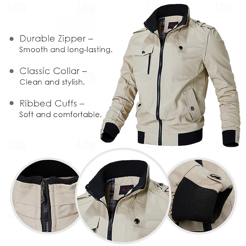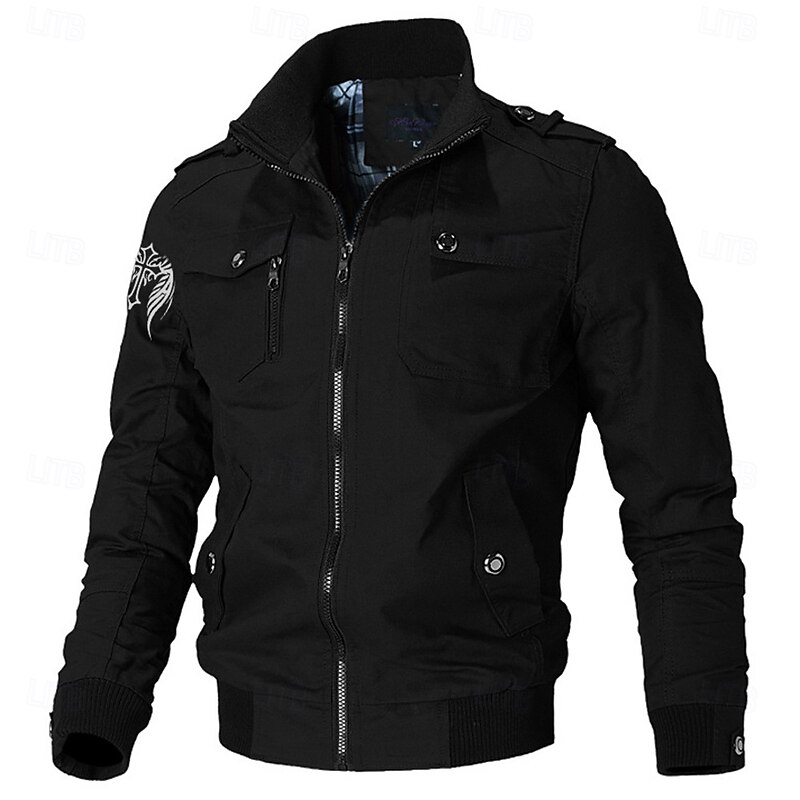 More information about Men's Graphic Wings Cross Military Jacket Coat Tactical Jacket Thermal Warm Casual Outdoor Dailywear Multiple Pockets Cotton Bomber Jackets with Shoulder Straps Fall Winter Stand Collar Long Sleeve
