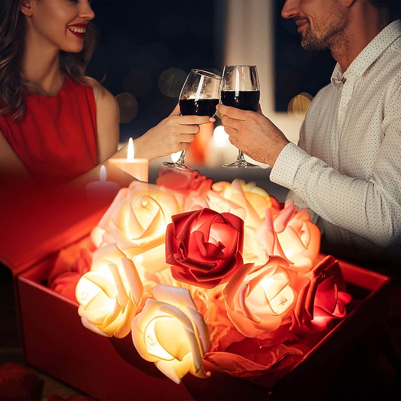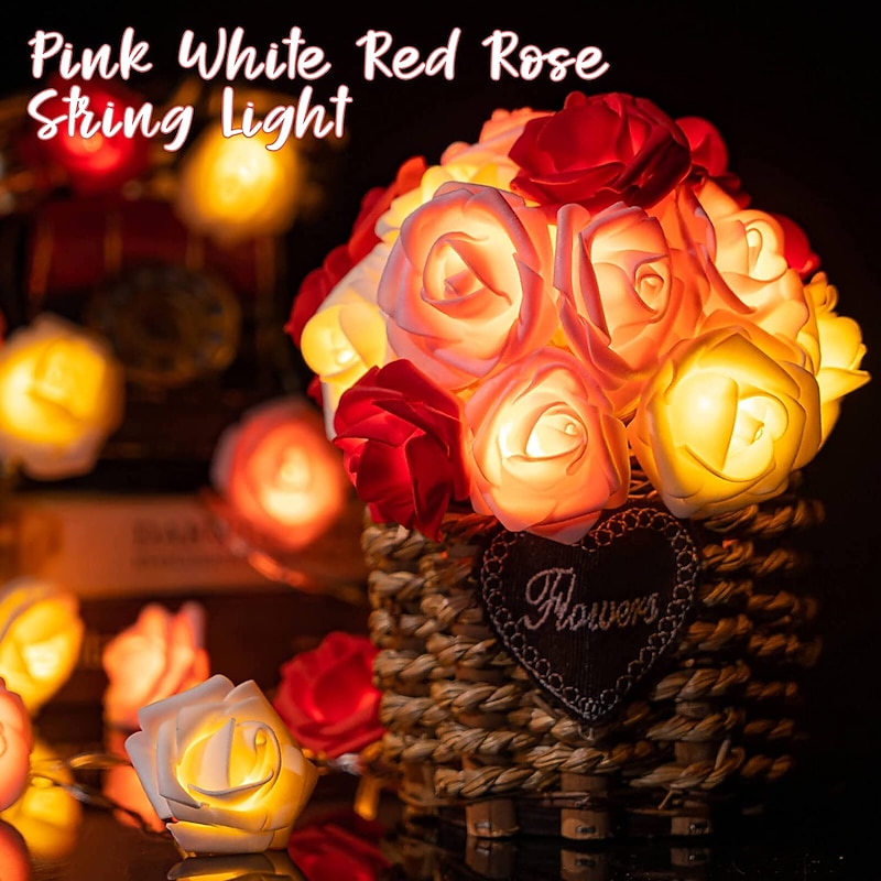 Why Choose Elegant Wedding Party Reception Rose String Lights – Battery Operated Red/Pink/White 6M/3M/2M 40/20/10 LED Artificial Flower Garland for Valentine's Day?