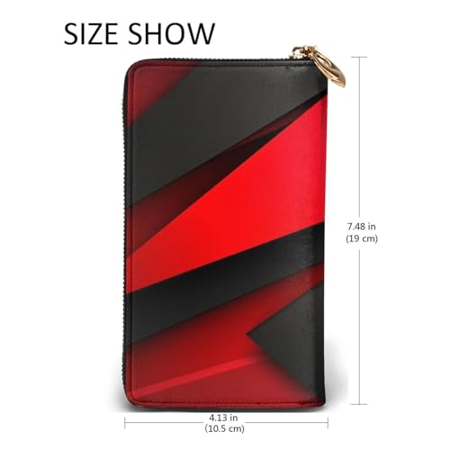 Red Black Wallet for Men Women Long Purse Leather Clutch Large Business Handbag Travel Phone Holder Credit Card Holder Money Case with Zipper Leather Wallets Gift 1