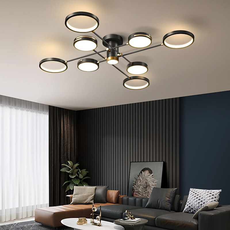 Modern LED Chandelier Lighting Lamp 8 Head 115cm Dimmable Black Frame Aluminum Indoor Fixture Light for Living Room Bedroom 110-240V 6