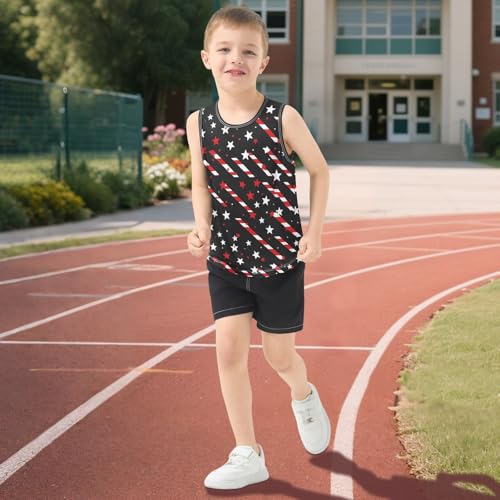 Boys Tank Top Shirts USA Flag Style Stars and Stripes Sleeveless T-Shirts Crew Neck for Kids Clothing Children