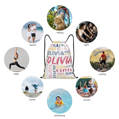 HOT ! White Custom Drawstring Bag with Name Personalized Drawstring Sport Sackpack String Gym Backpack for Men Women for Swim Travel M