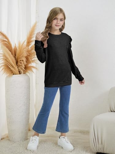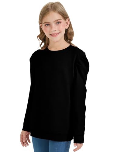 Girls Puff Sleeve Cute T Shirts Kids Fall Tops Crewneck Clothes Loose Fit 5-14Y