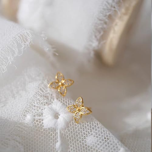 925 Sterling Silver Dainty CZ Lucky Leaf Stud Earrings for Women Flower Shaped 14K Gold Plated Earring Minimalist Stackable Fashion to Daughter Mom Wedding Birthday Halloween Season Jewelry for Her 4