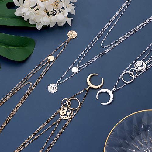 6 Pieces Layered Necklaces For Women Long Necklaces Gold Choker Necklaces Map Coin Bar Crescent Moon Necklace Layered Y Pendant Necklace Multilayer 5
