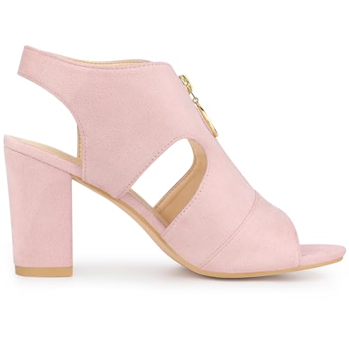 Allegra K Women's Front Zip Cut Out Chunky Heels Slingback Gladiator Heel Sandals 4