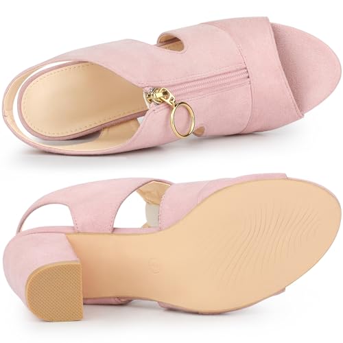 • Chunky Heel Gladiator Sandals for Women, Slingback Heels, Open Toe, Front Zipper Closure