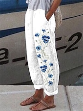 More information about Women's Pants Trousers Straight Streetwear Casual Long High Waist Floral Pocket Printing Elastic Drawstring Design Breathability Soft Micro-elastic Vacation Street Daily Wear White Yellow Red Blue