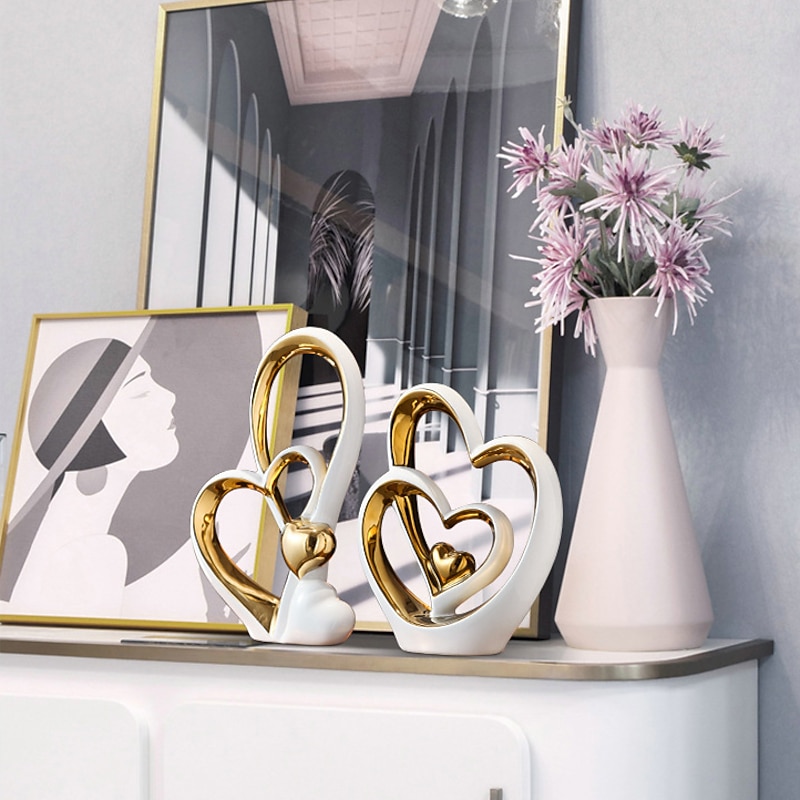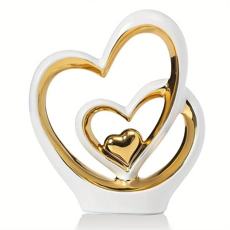 Double Heart Porcelain Decor for Living Room, Entryway, Coffee Table, and Shelves - Perfect Anniversary and Father's Day Gift for Couples and Lovers - Modern and Decorative Home Decor 16