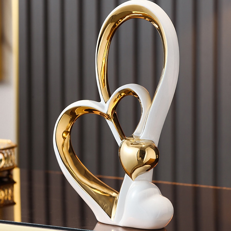 HOT ! Double Heart Porcelain Decor for Living Room, Entryway, Coffee Table, and Shelves - Perfect Anniversary and Father's Day Gift for Couples and Lovers - Modern and Decorative Home Decor
