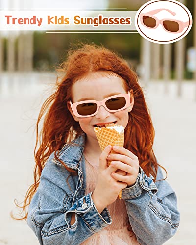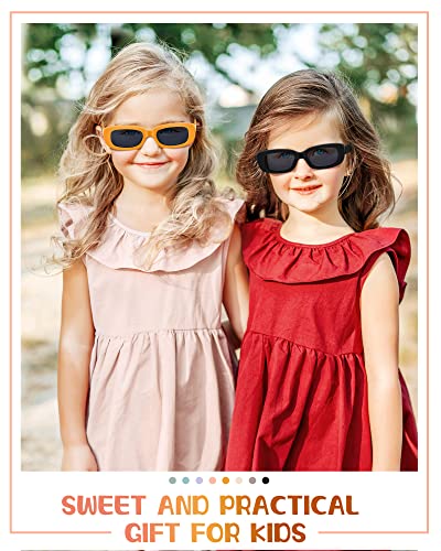 Xuhal 8 Pairs Kids Retro Rectangle Sunglasses Polarized Sunglasses Children Girls Boys Y2K Trendy Eyewear Square Frame Glasses for Summer Beach Age 3-10 Toddlers 6