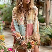 More information about Women's Shirt Blouse Floral Hawaiian Stylish Basic Long Sleeve V Neck Regular Tops Daily Going out Beach Wear Print Pink Spring Fall
