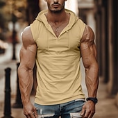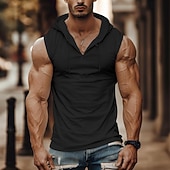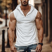 Highlights [Fabric]: Crafted from a high-quality polyester blend, this sleeveless tank top is designed for maximum comfort and breathability, perfect for summer wear and active lifestyles. [Fit]: The slim fit highlights a muscular physique, offering a sleek and modern silhouette that's ideal for both casual outings and intense gym sessions. [Design Highlights]: Featuring a unique hood with adjustable drawstrings, the tank top enhances both style and function. The deep V-neck design not only adds a touch of flair but also improves ventilation during workouts. Its plain pattern in versatile colors such as white, black, and khaki ensures effortless coordination with various outfits. [Occasions]: This men's tank top is perfect for outdoor activities, gym workouts, and casual gatherings. Whether you're going for a run or meeting friends for a weekend outing, its trendy appeal makes it suitable for any occasion. [Sizes]: Available in a range of sizes from S to 3XL, accommodating different body types and preferences, making it an essential addition to your activewear collection. Perfect for everyday use. top-grade materials and excellent craftsmanship ensure long-lasting durability.