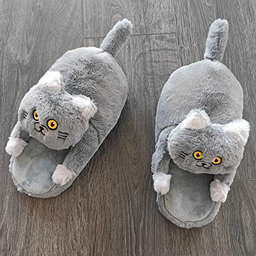 HOT ! Cat Slippers for Women Kawaii Cute Plush Animal Slippers Fuzzy Warm House Shoes Winter Cat Slippers for Indoor and Outdoor (Gray)