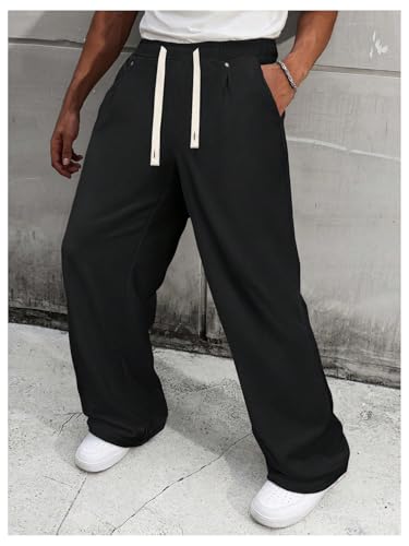 HOT ! Verdusa Men's Loose Straight Leg Sweatpants Solid Waistband Pants with Pockets