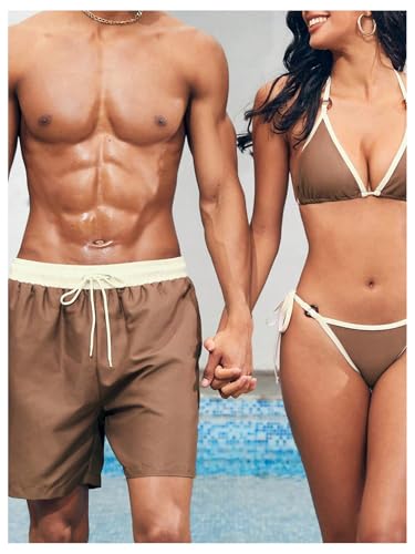 HOT ! Verdusa Men's Colorblock Drawstring Waist Swim Trunks Summer Beach Board Shorts with Pockets