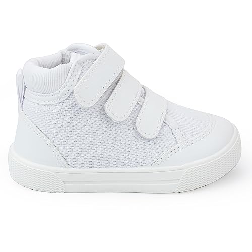 • The high top toddler shoes with triple strap hook and loop closure allows for easy on and off,making it convenient for busy individuals.No need to worry about tying laces as the closure system ensures a secure fit.Additionally,the neutral colors of the shoe make it easy to match with any outfit.