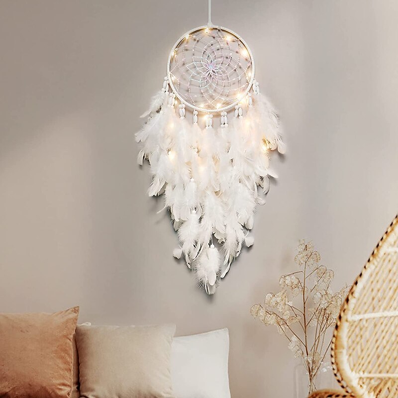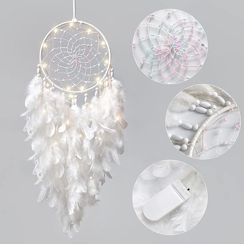 Why Choose LED Dream Catcher White Feather Fairy Lights Creative Wall Hanging Holiday Bedroom Home Wedding Balcony Garden Decoration Wind Chimes Light Birthday Blessing Gift?