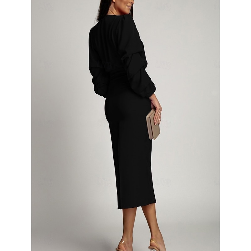 More information about Women's Midi Dress Bodycon Dress Work Dresses Semi Formal Office Regular Fit Plain Long Sleeve V Neck Black Green Summer