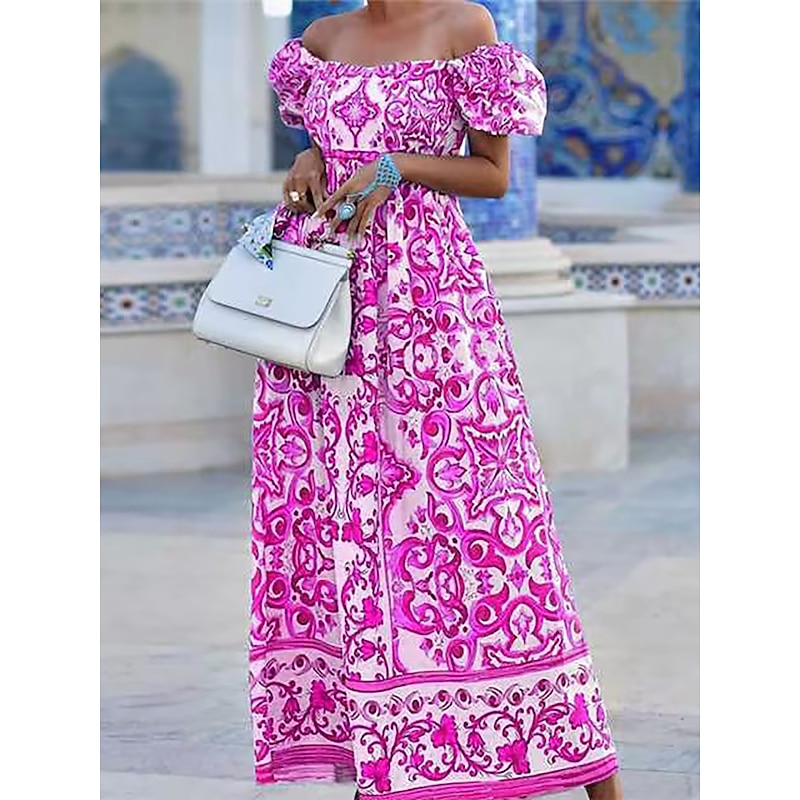 Women's Long Dress Maxi Dress Casual Dress Boho Dress Print Dress Floral Streetwear Casual Outdoor Daily Vacation Print Short Sleeve Off Shoulder Dress Regular Fit Black Pink Blue Summer Spring S M L