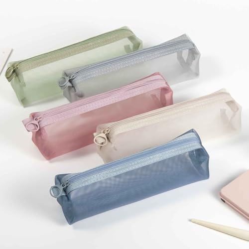 HOT ! Aswewamt 5Pcs Multicolor Nylon Mesh Zipper Bags, 7.9" Transparent Makeup Brush Pouch Portable Cosmetic Bags Square Pencil Case Organizer Stationery Storage Bags for Travel, Lipstick, Earphone, Keys