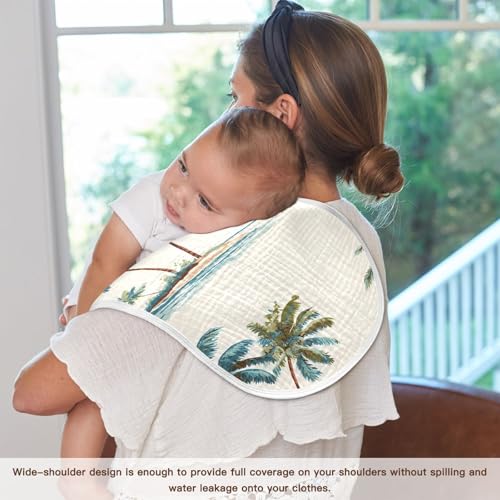 Bolaz Baby Burp Cloths 2 Pack,Palm Trees Pattern,Feeding Cloths Face Towel Super Absorbent Soft Cotton Burping Rags Feeding Bibs 5