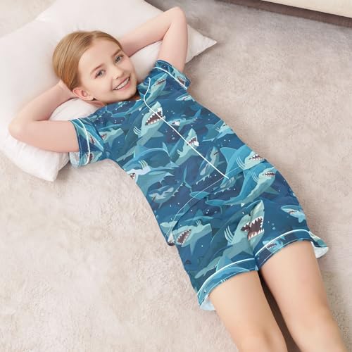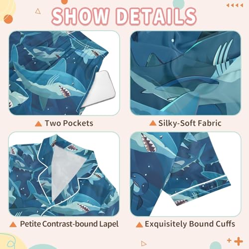 ALAZA Shark Ocean Blue Pajamas Satin Pajama Set Short Sleeve Button Down Sleepwear 6