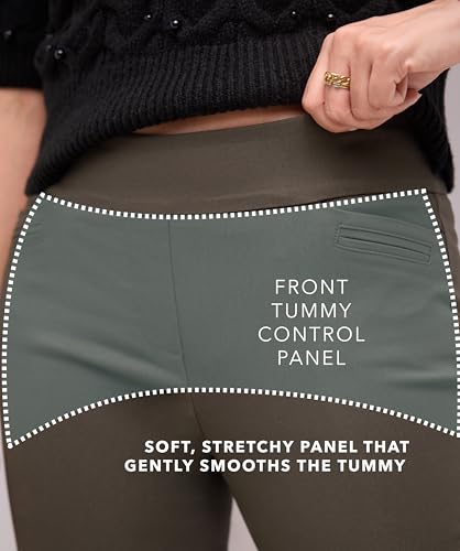 • COMFORT: Pull-On style (no zippers or closures). Contour waistband with hidden elastic hugs your curves and lays flat on the body. Front tummy control panel offers light shaping.
