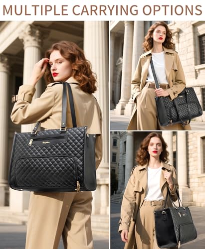 • STYLISH QUILTED LOOK WITH FLEXIBLE CARRYING OPTIONS: Made from premium, water-resistant faux leather and reinforced stitching, the quilted work tote bag keeps its shape and stands up to daily wear. The quilted design and golden hardware add elegance to your daily look. Features comfortable top handles and a detachable shoulder strap, this laptop lunch bag provides flexibility to carry by hand, over the shoulder, or crossbody style for hands-free convenience on busy days, long commutes or travel
