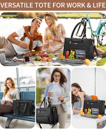 • VERSATILE LAPTOP BAG & LUNCH BAG COMBO: Say goodbye to carrying multiple bags! This tote bag for women is super convenient and holds everything for daily routine. Not only does it function as a 15.6" laptop bag with multiple compartments, but also work as a lunch bag women for keeping your lunch fresh, carrying your work essentials and meals in a chic solution. Perfect for busy women, teacher, nurse, commuter, college student, work, travel, picnic, or casual use. Practical while keeping stylish