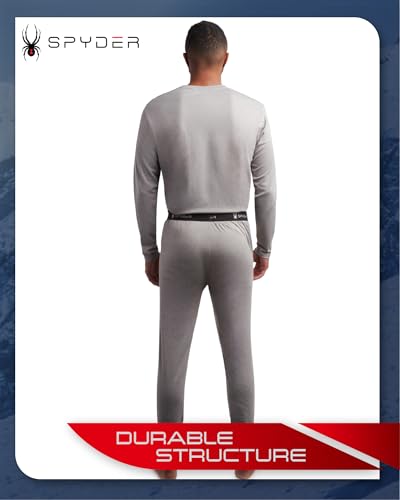 Fabric type: 92% Polyester, 8% SpandexOrigin: ImportedAUTHENTIC SPYDER: Warm Base Layer Men Thermal Shirt and Thermal Bottoms; Products built with over 40 years of performance research in the science of speedMAXIMUM INSULATION: Designed with ThermoWeb 1.0 technology, this thermal underwear set locks in body heat to keep you warm in cool conditions. The brushed back fleece lining provides ultimate insulation, making it an ideal base layer for cold weather activities like skiing, snowboarding, or outdoor adventures. Perfect for layering during winter sports.MOISTURE-WICKING PERFORMANCE: Engineered with DryWeb technology, this thermal base layer pulls moisture away from the skin, keeping you dry and relaxing during intense activities. Whether you’re wearing this as mens thermals top and bottom set or layering it under outdoor gear, enjoy superior sweat control for active cold-weather performance.FLEXIBLE 2-WAY STRETCH: Featuring FlexWeb material with a snug yet comfortable fit, this thermal underwear for men bottoms moves with your body for unrestricted mobility. The stretch waistband and snug ankle cuffs ensure a secure fit, whether you’re layering for the slopes or lounging indoors in mens long johns thermal set style.VERSATILE BASE LAYER SET: This 2-piece base layer men for cold weather set includes a thermal long-sleeve shirt and pants designed for maximum warmth and comfort. Ideal as a ski base layer mens option or worn casually, it offers premium protection in winter conditions. A must-have thermal undershirt for men and bottoms for everyday warmth. Perfect for everyday use. top-grade materials and excellent craftsmanship ensure long-lasting durability.