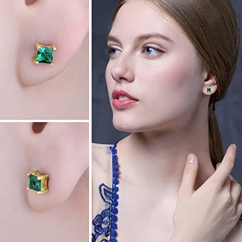 JewelryPalace Square 0.8ct Genuine Garnet Peridot Amethyst Citrine Topaz Created Ruby Sapphire Simulated Emerald Gemstone Stud Earrings Women, 14k Gold Plated 925 Sterling Silver Earring Jewelry Set 5
