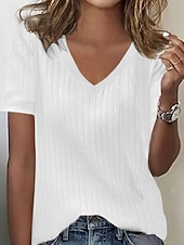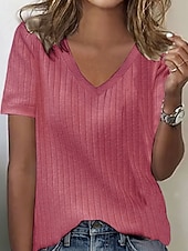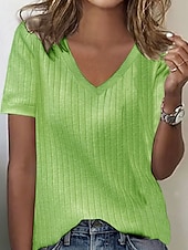 More information about Women's Shirt Solid Color Stylish Casual Sleeveless Short Sleeve V Neck Regular Tops Daily Holiday Going out White Light Green Pink Red Camel Summer Spring